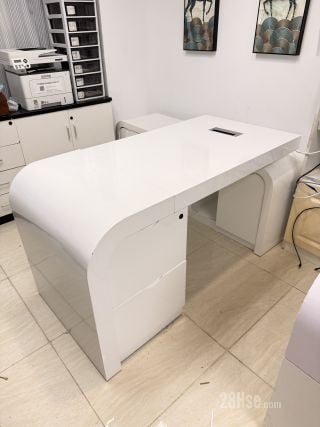 ️優質高級純白亮面焗油老闆辦公枱桌連側邊櫃,弧形角流線形,自由移動L形邊櫃在左邊或右邊 【數量】 共有1件,原價$6000一張,現搬割愛價$400一張 【尺寸】 長方形主枱:140cm寛(可自由調較到170cm寛),70cm深,75cm高 側邊櫃:162cm長x40cm深x60cm高 【取貨】 自取於新蒲崗 【取貨時限】 即時可約以自取