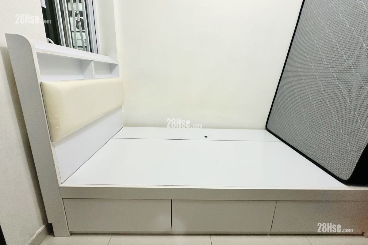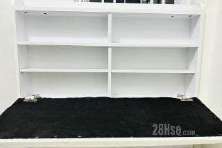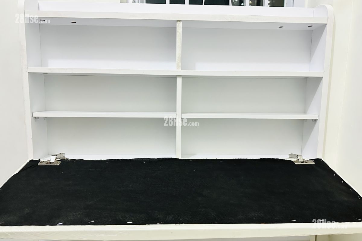 附有床头收纳柜 揭开皮部屏盖有较大的储物空间(床头皮透明保护贴仍原封不动)另有三格拉柜桶