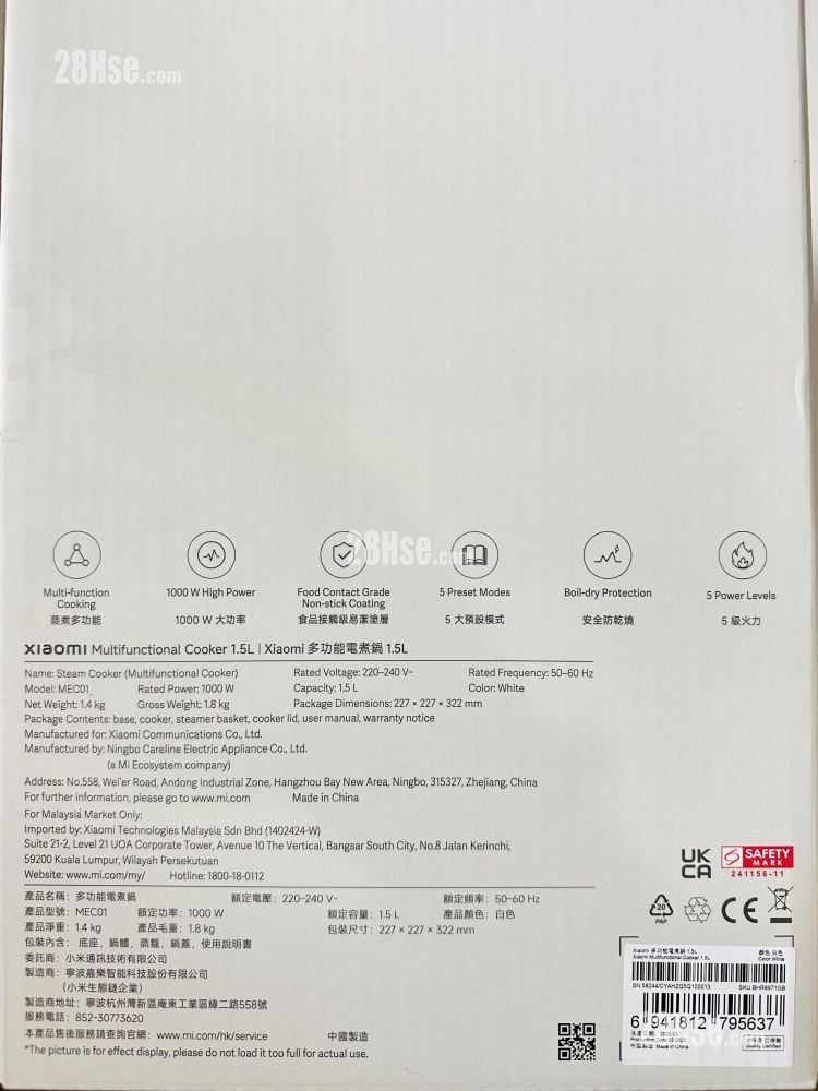 包含:底座、锅体、蒸笼、锅盖、使用说明书