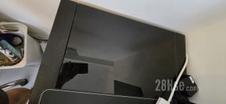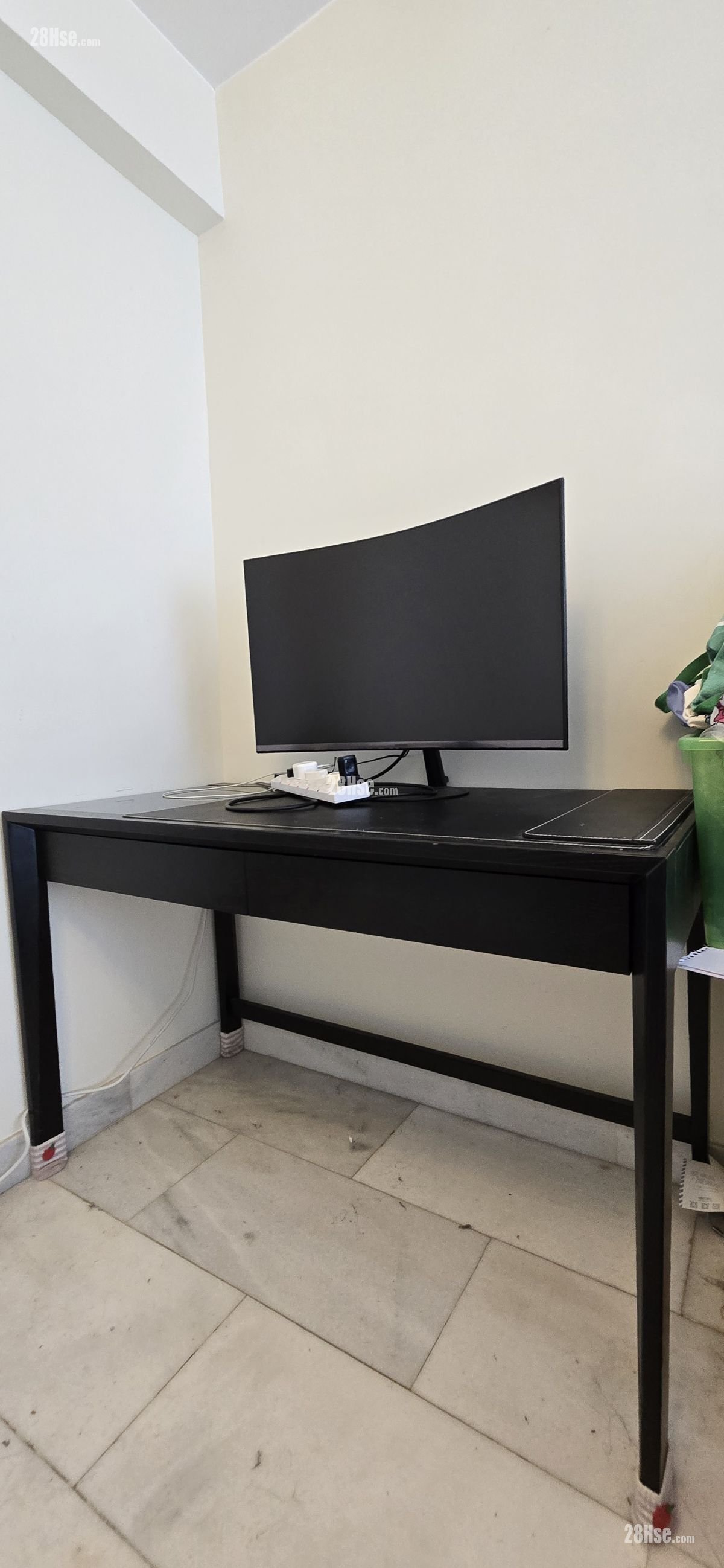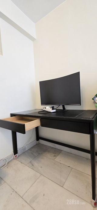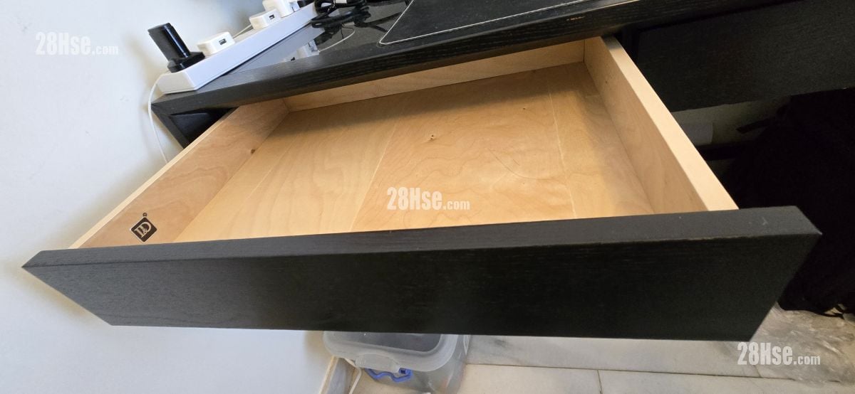 黑色的書桌,兩個抽屜。桌面鋼化玻璃。靚木 料,重身。