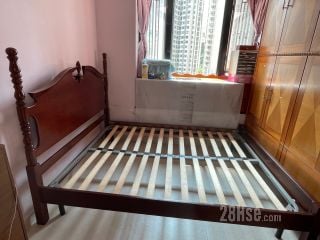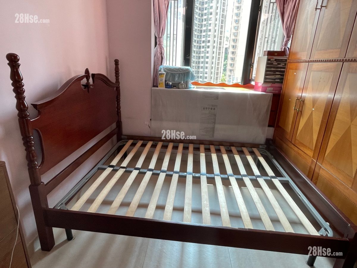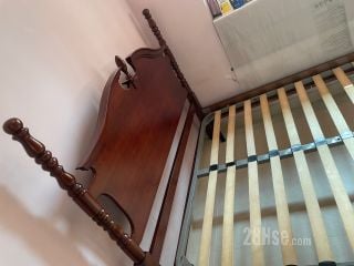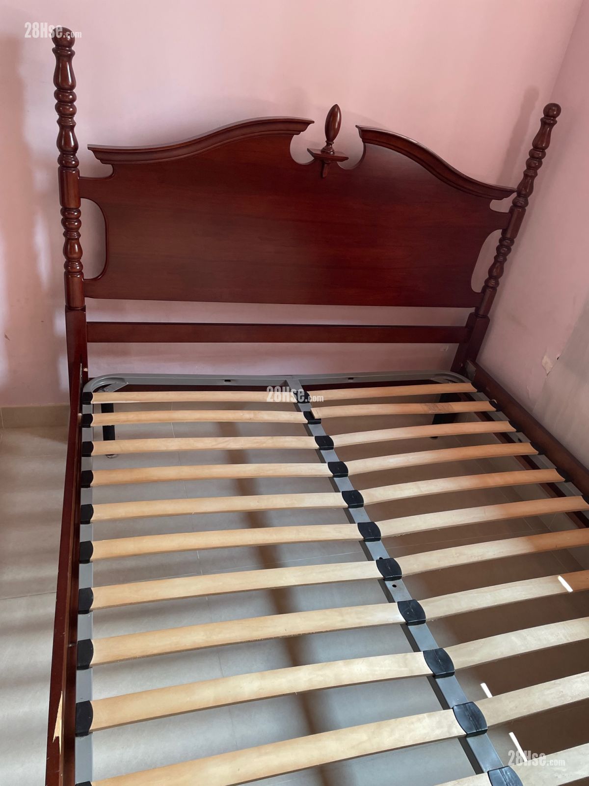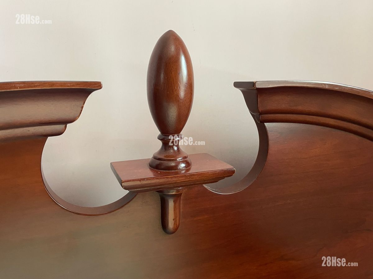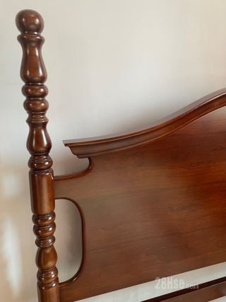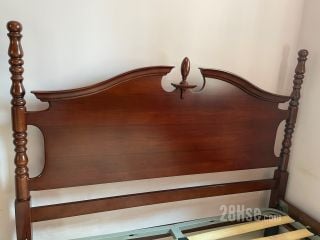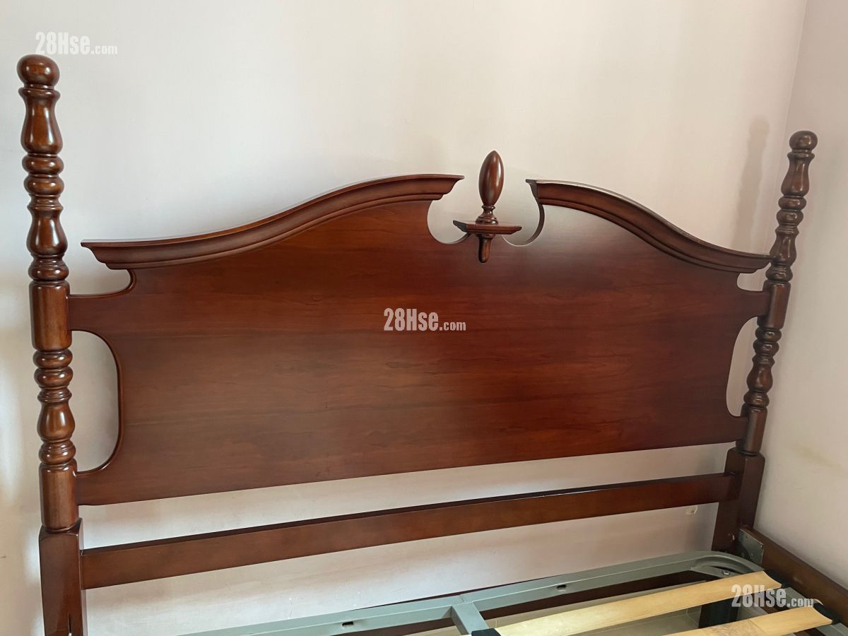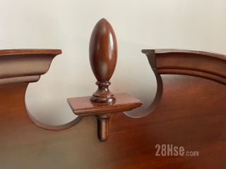 歐陸古典貴族雕刻紅木大床, 精緻雕刻床頭版連實木雕刻柱, 配金屬床架框, 木條板歐陸床架. 5呎 x 6 呎3 吋