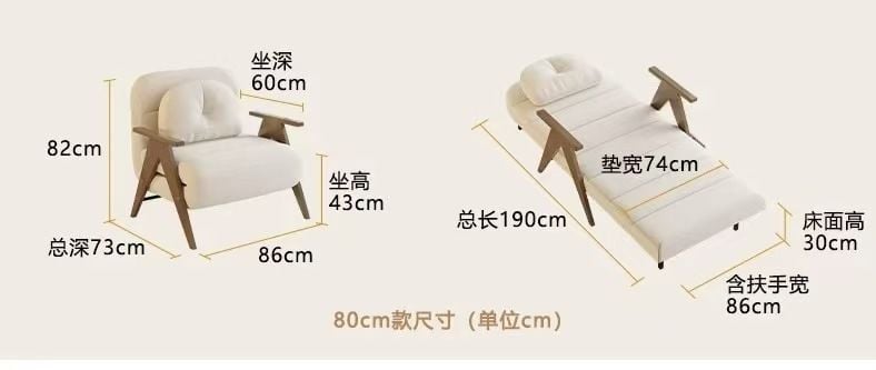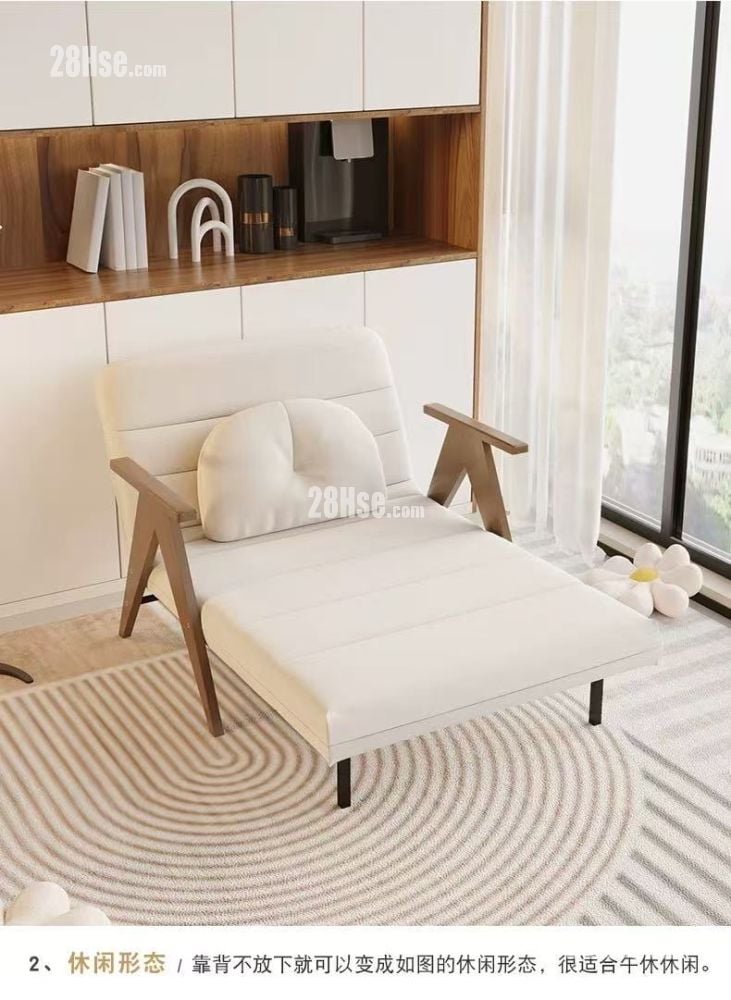 原價人民幣1168,未拆紙盒,全新的,因為單坐位不適合,所以出讓。這款多功能沙發床具有五檔靠背角度調節,滿足不同需求。可變成休閒躺椅或床的形態。採用藍灰貓抓布,80cm款。尺寸:總深73cm,坐深60cm,坐高43cm,總長190cm,床面高30cm,含扶手寬86cm。乳膠款坐面和床面均增加2cm乳膠面,舒適透氣。