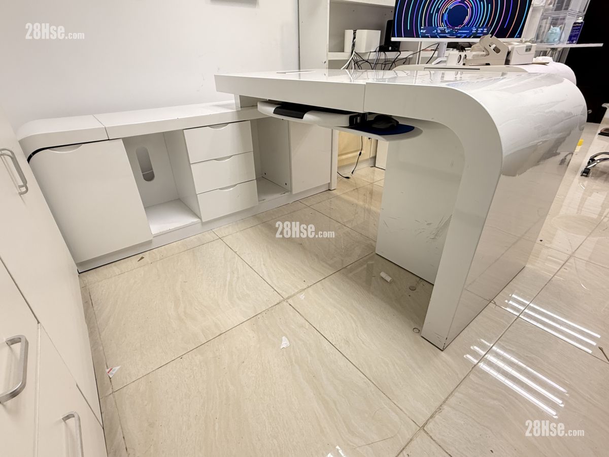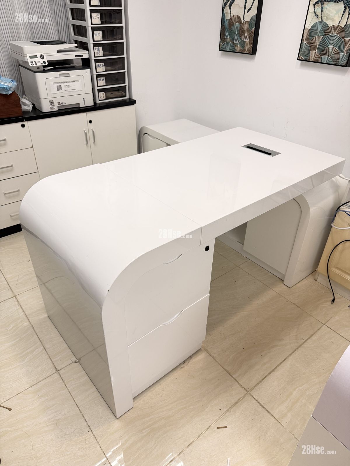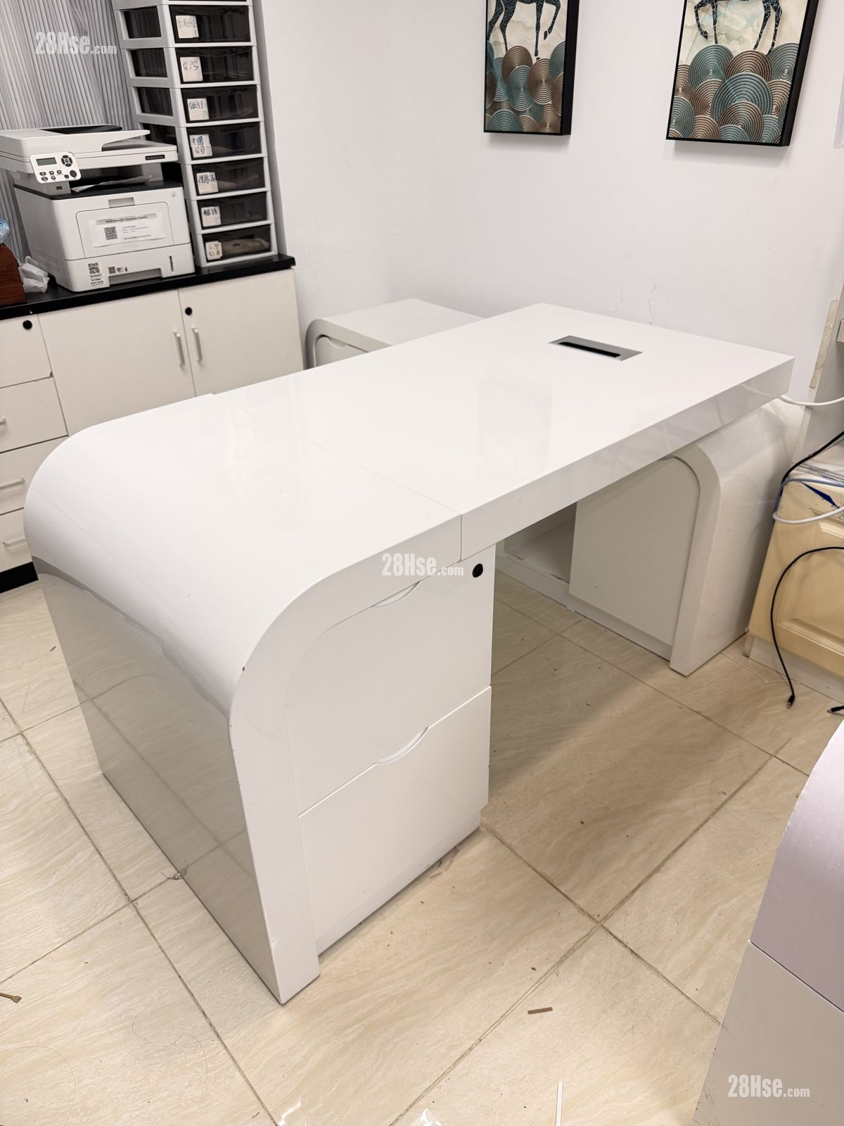 ️優質高級純白亮面焗油老闆辦公枱桌連側邊櫃,弧形角自由移動L形邊櫃