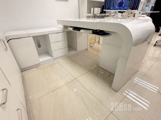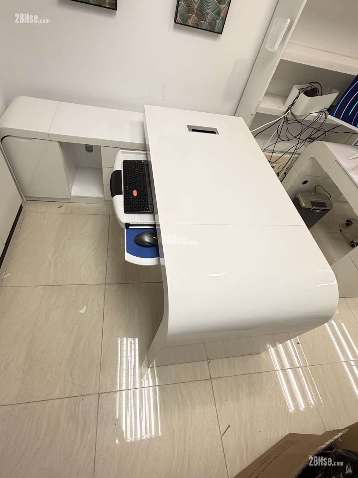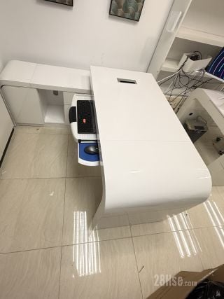 ️優質高級純白亮面焗油老闆辦公枱桌連側邊櫃,弧形角流線形,自由移動L形邊櫃在左邊或右邊