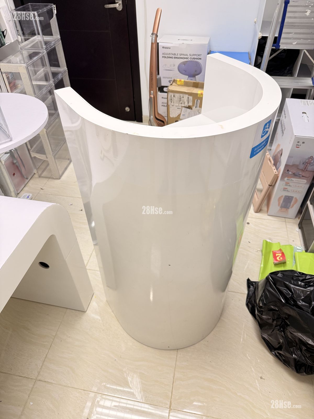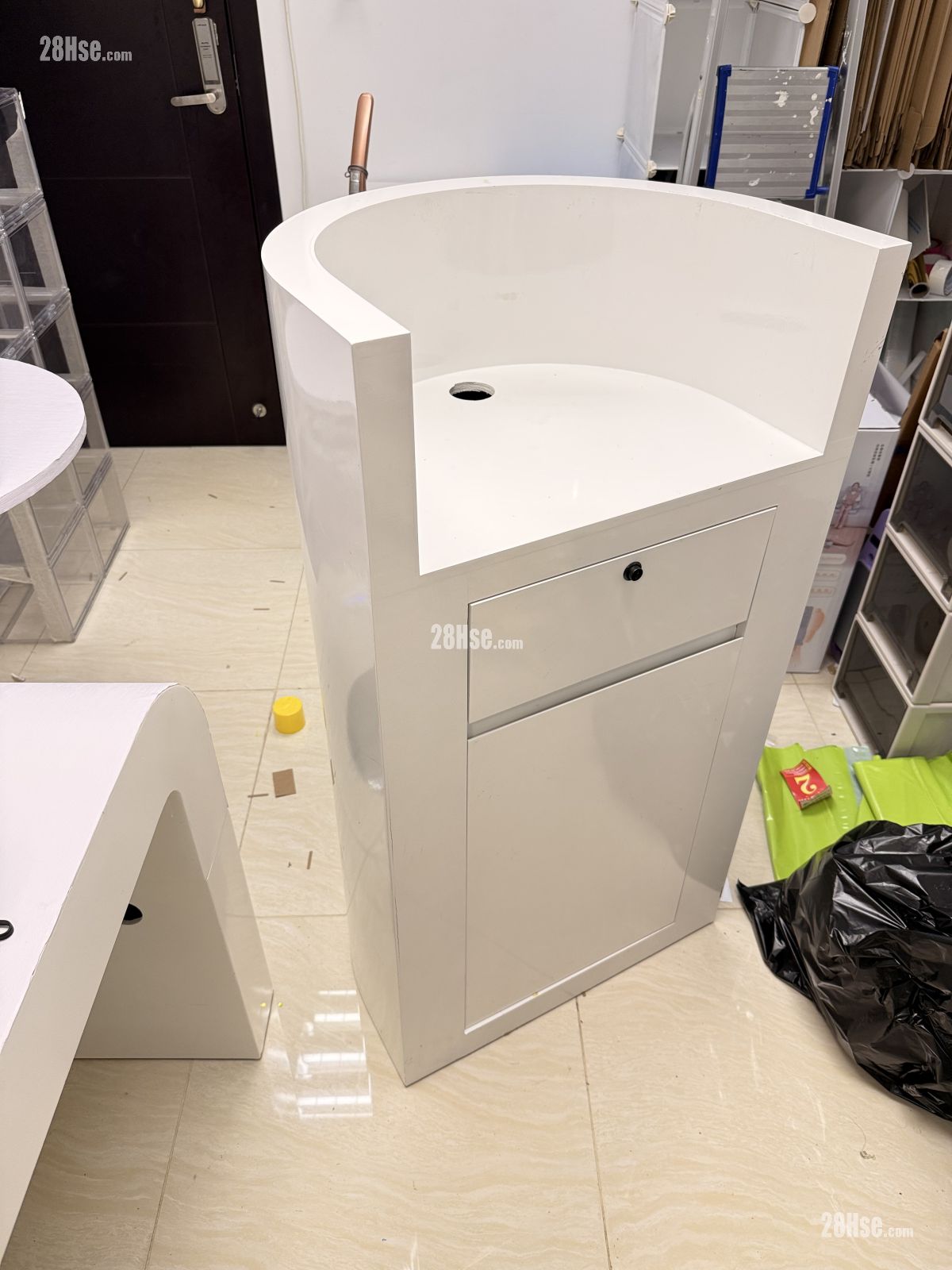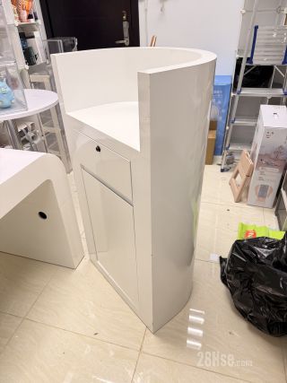 ️白色焗油弧形接待櫃檯收銀台展示台有櫃桶及門儲物
