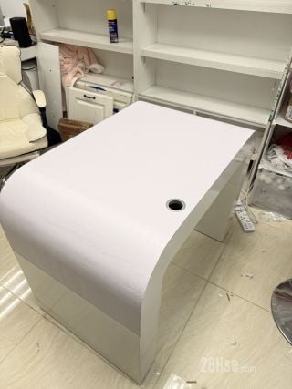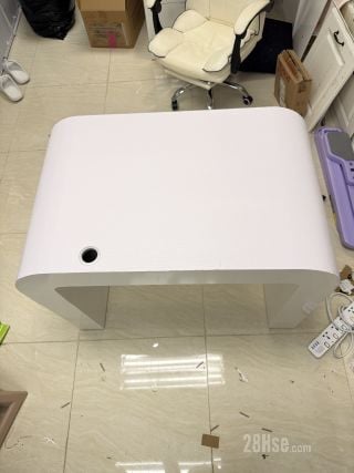 ️優質高級純白亮面焗油辦公枱桌弧形角流線