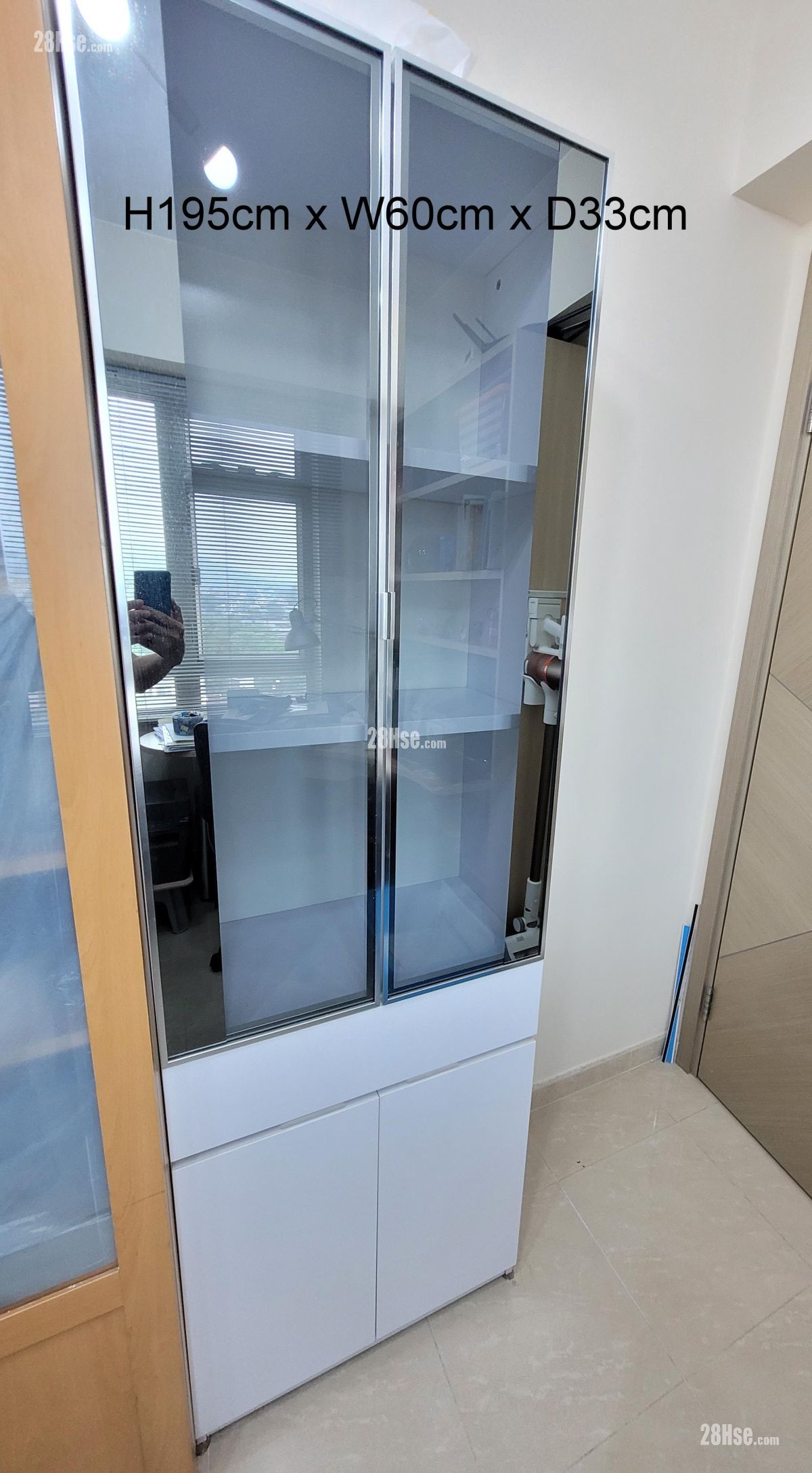 86cm白色玻璃書櫃,九成新。自行安排拆件運送。元朗區,3樓沒有升降機。