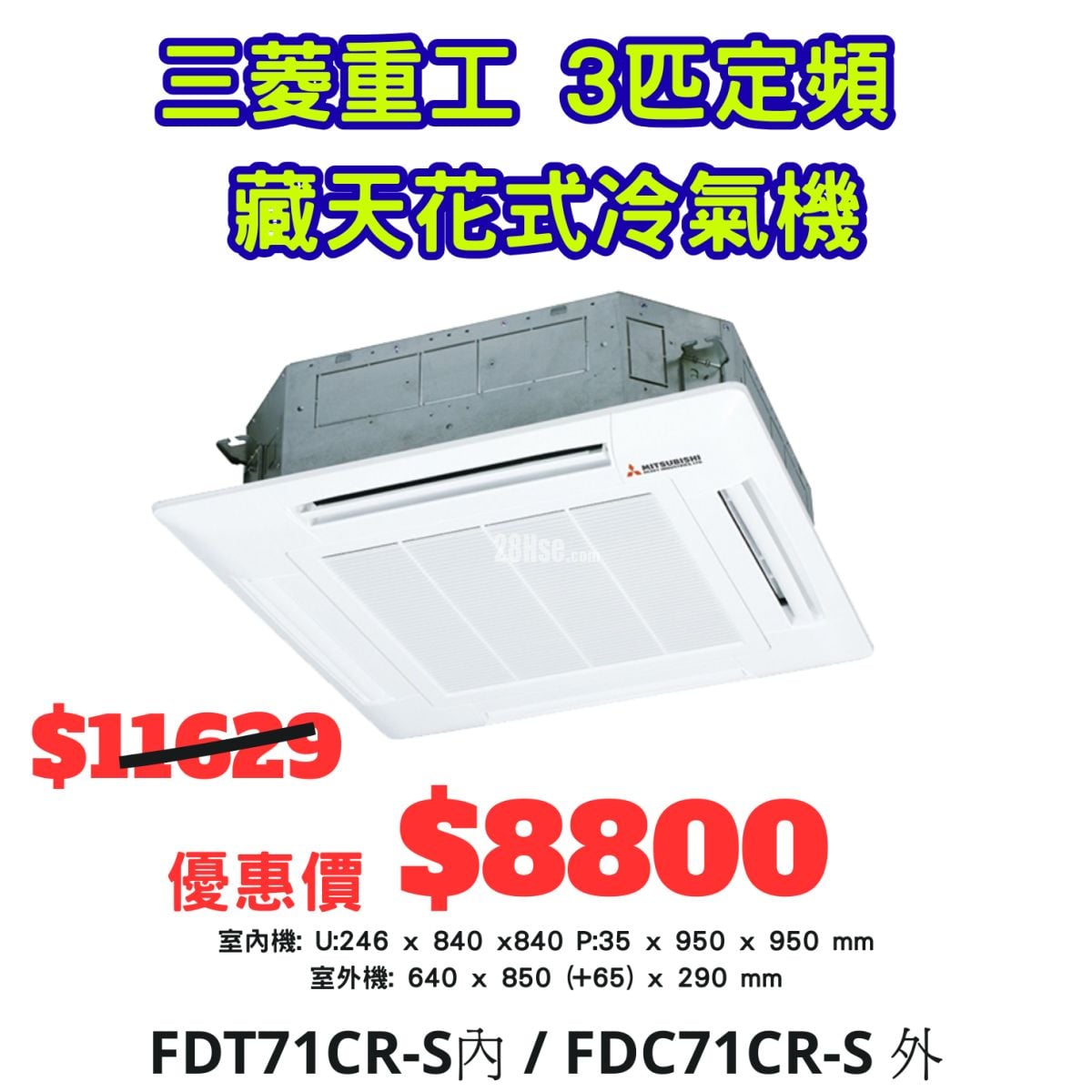 三菱3匹藏天式冷氣機 只有2部