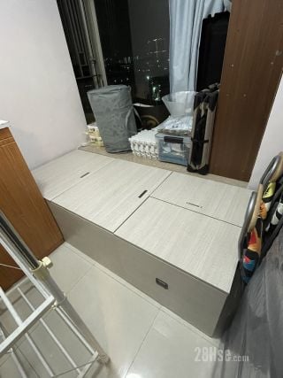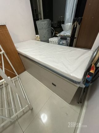 2呎半組合床(6成新、$100):由四個儲物箱組合而成,闊76cm長184cm高51cm,床褥厚10cm