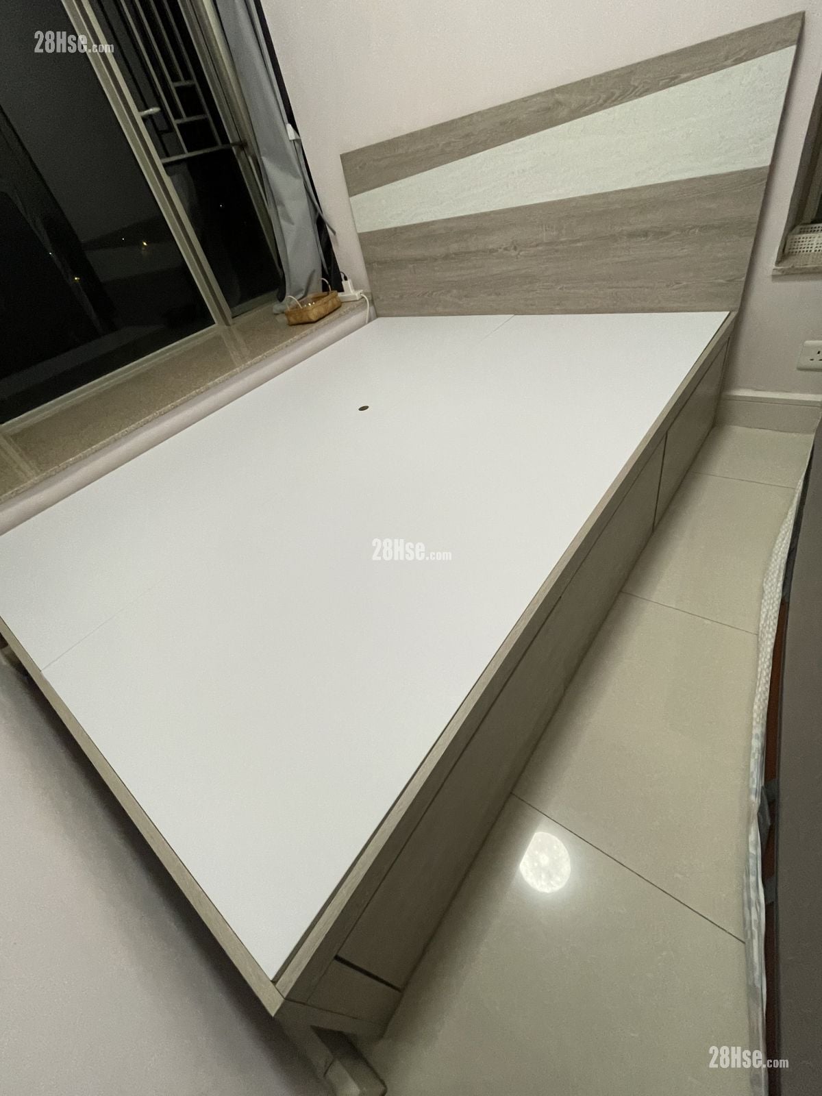 5呎床架(9成新、$150):床面闊152.5cm長191cm高40cm,床頭背板高103cm,全長193cm