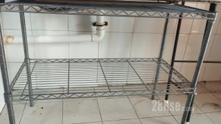 尺寸 77 X 35 X 60 兩層 銀色鋼架 買雙頭煤氣爈, 送層架,再免費送 黑色層架 下層可放洗衣機 67 X 26 X 155